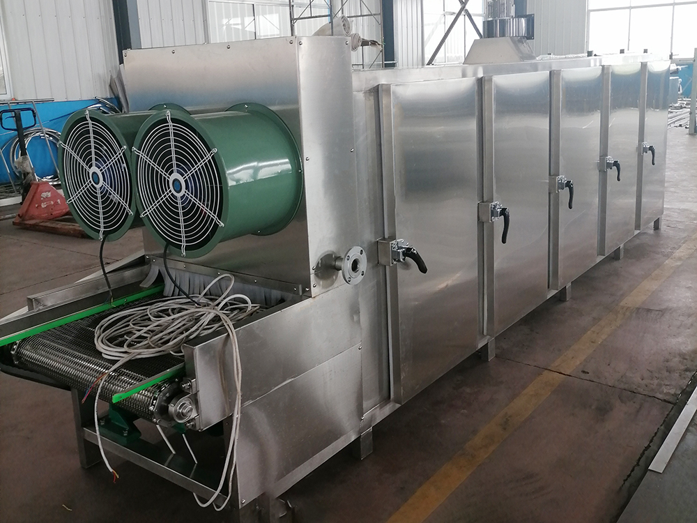 多层网带式烘干机是利用热空气作为干燥介质与湿物料相互接触运动,使湿物料中所含的水分扩散、汽化和蒸发排除,达到干燥目的。