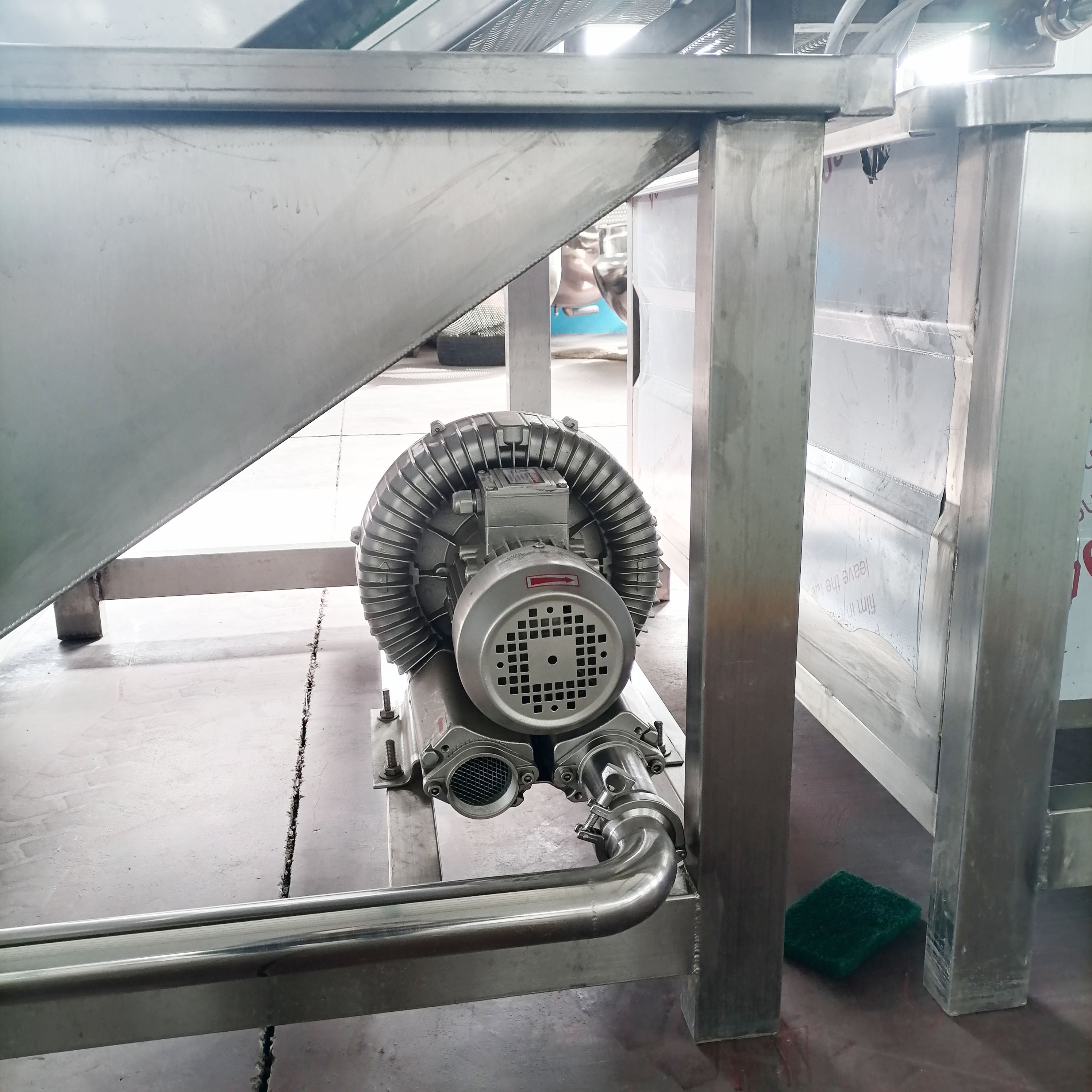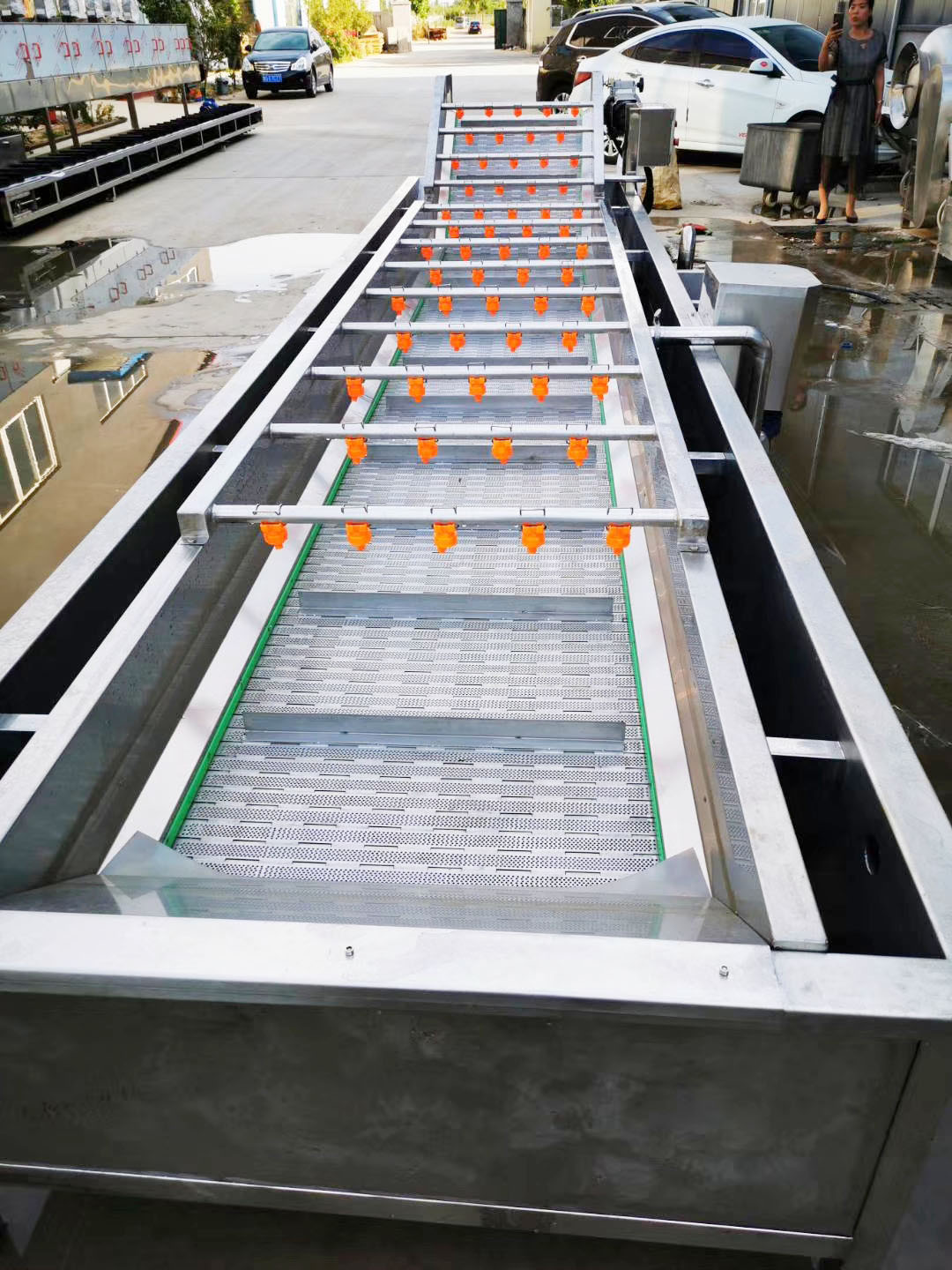 气泡清洗机是大枣,蔬菜,水产生产线中的重要产品,主要用于大枣,蔬菜,水产的清洗。气泡清洗机的原理主要是利用箱体前部分设备箱体中注适量的水,经过加热管将水温加热,原料在经过箱体时,会与气泡机和水的结合作用下做翻滚状态,并随网带不断向前推进,在出水面时,设有喷淋头,高压冲洗。